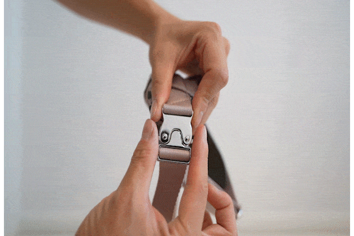 素早く頭を入れてバックルを止めるだけ、たった3秒で完了!